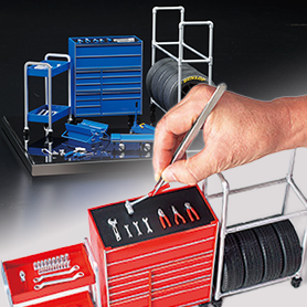 引き出しが開閉する、キャスターが回る、パーツが実物の様に可動!細部にまで拘ったツールキット付属!数量限定販売