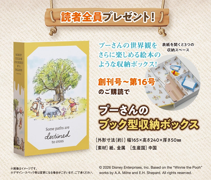 - 創刊号~第16号のご購読で!全員プレゼント「プーさんのブック型収納ボックス」