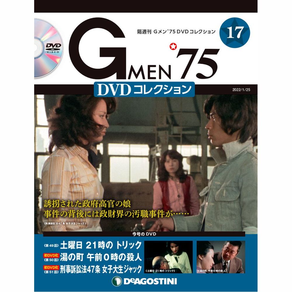 その他の号はこちら Gメン’75 DVDコレクション 第17号 商品番号1008450017000000 1,799円 数量 1 2 3 4 5 6 7 8 9 10 カートに入れる 商品概要 発売日:2021年12月27日第49話「土曜日21時のトリック」第50話「湯の町 午前0時の殺人」第51話「刑事訴訟法47条 女子大生ジャック」 その他の号はこちら バックナンバー一覧はこちら バインダー・ケースを購入する よくある質問