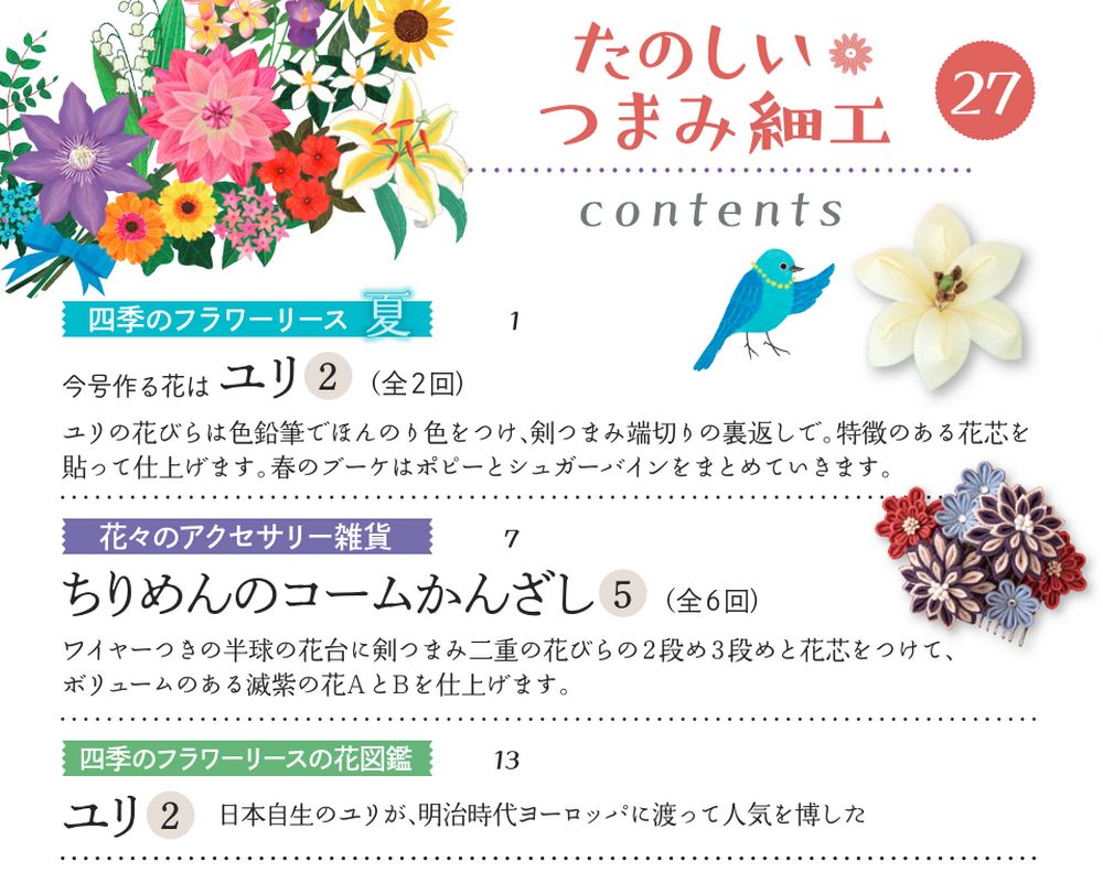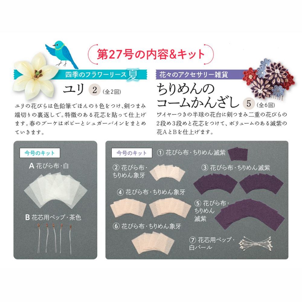 その他の号はこちら たのしい つまみ細工 第27号 商品番号1009050027000000 1,499円 数量 1 2 3 4 5 6 7 8 9 10 カートに入れる 商品概要 発売日:2023年10月03日ユリ② 他 定期購読する 商品詳細はこちら その他の号はこちら バックナンバー一覧はこちら バインダー・ケースを購入する グッズ・別売りパーツを購入する よくある質問