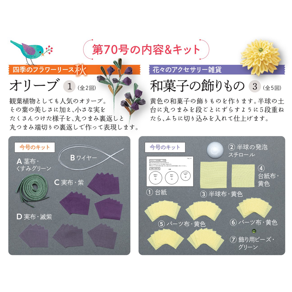 その他の号はこちら たのしい つまみ細工 第70号 商品番号1009050070000000 1,499円 数量 1 2 3 4 5 6 7 8 9 10 カートに入れる 商品概要 発売日:2025年05月27日オリーブ① 他 定期購読する 商品詳細はこちら その他の号はこちら バックナンバー一覧はこちら バインダー・ケースを購入する グッズ・別売りパーツを購入する よくある質問