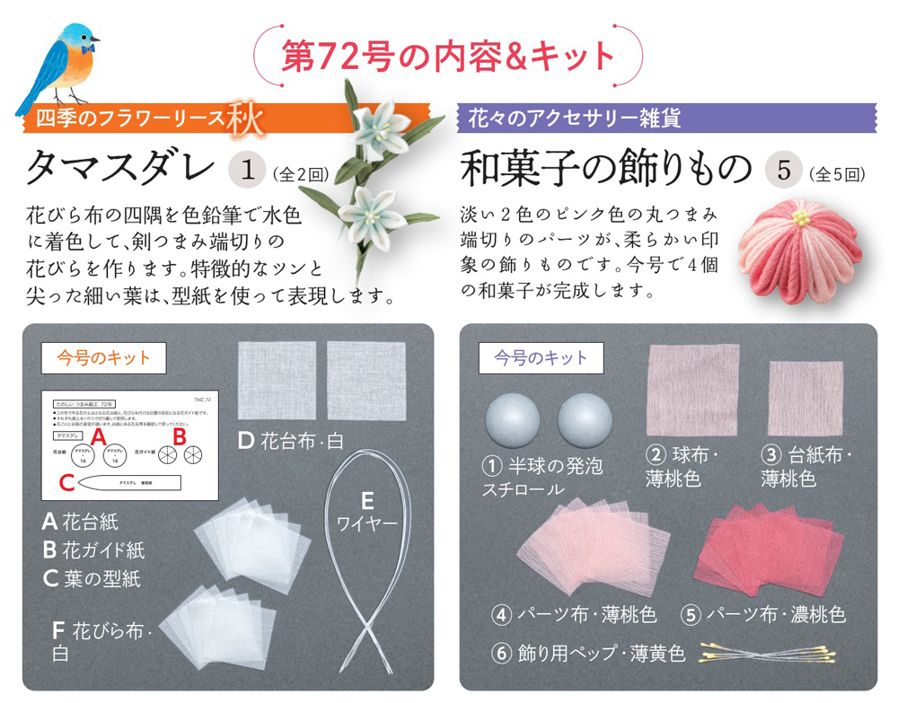 その他の号はこちら たのしい つまみ細工 第72号 商品番号1009050072000000 1,499円 数量 1 2 3 4 5 6 7 8 9 10 カートに入れる 商品概要 発売日:2025年06月24日タマスダレ① 他 定期購読する 商品詳細はこちら その他の号はこちら バックナンバー一覧はこちら バインダー・ケースを購入する グッズ・別売りパーツを購入する よくある質問