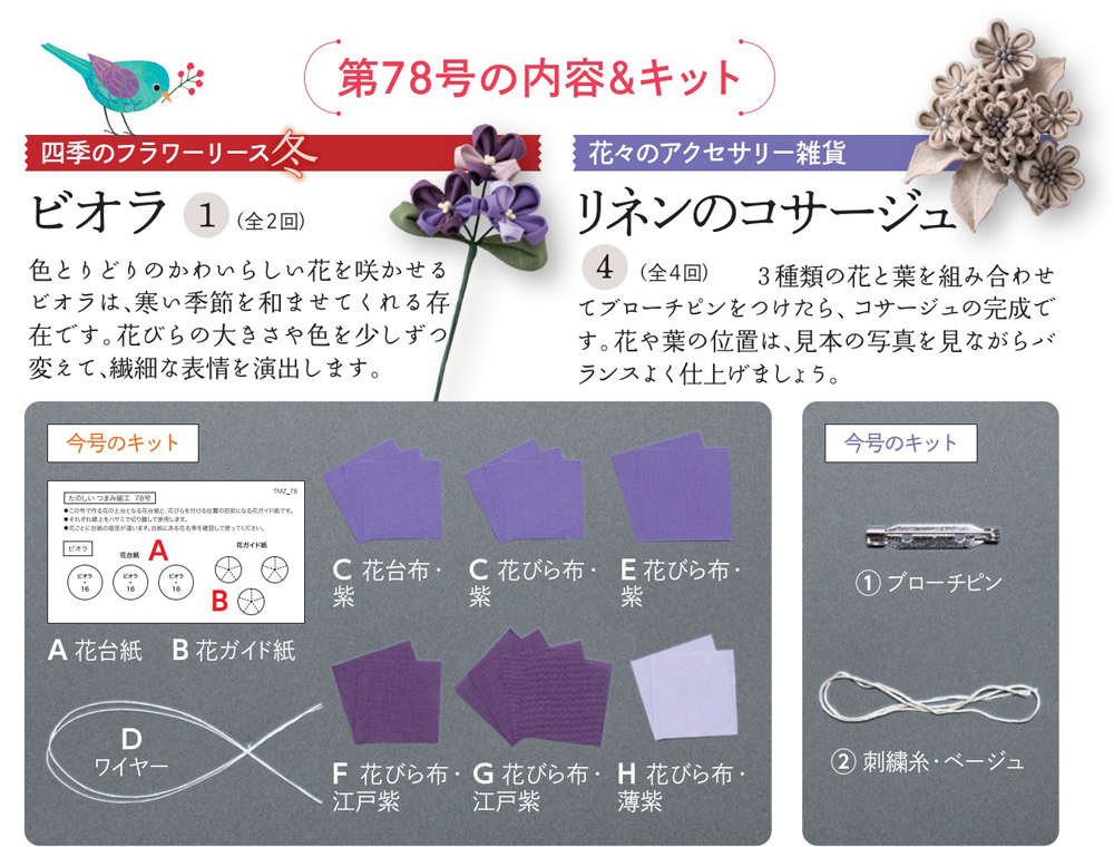 その他の号はこちら たのしい つまみ細工 第78号 商品番号1009050078000000 1,499円 数量 1 2 3 4 5 6 7 8 9 10 カートに入れる 商品概要 発売日:2025年09月16日ビオラ① 他 定期購読する 商品詳細はこちら その他の号はこちら バックナンバー一覧はこちら バインダー・ケースを購入する グッズ・別売りパーツを購入する よくある質問