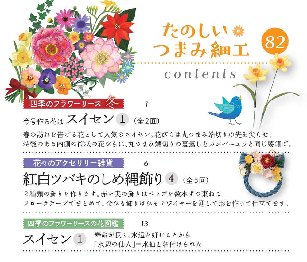 その他の号はこちら たのしい つまみ細工 第82号 商品番号1009050082000000 1,499円 数量 1 2 3 4 5 6 7 8 9 10 カートに入れる 商品概要 発売日:2025年11月11日スイセン① 他 定期購読する 商品詳細はこちら その他の号はこちら バックナンバー一覧はこちら バインダー・ケースを購入する グッズ・別売りパーツを購入する よくある質問