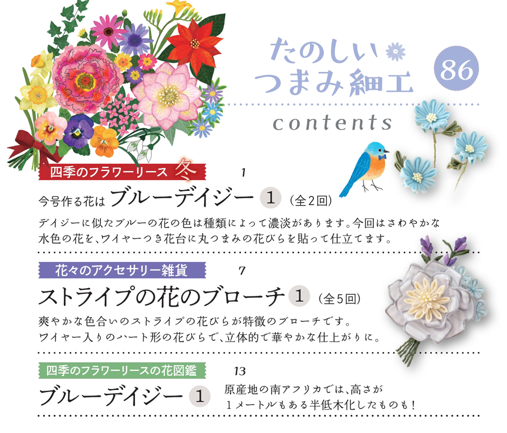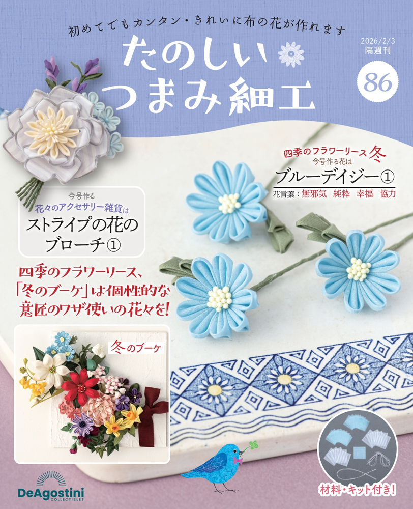 その他の号はこちら たのしい つまみ細工 第86号 商品番号1009050086000000 1,499円 数量 1 2 3 4 5 6 7 8 9 10 カートに入れる 商品概要 発売日:2026年01月06日ブルーデイジー① 他 定期購読する 商品詳細はこちら その他の号はこちら バックナンバー一覧はこちら バインダー・ケースを購入する グッズ・別売りパーツを購入する よくある質問