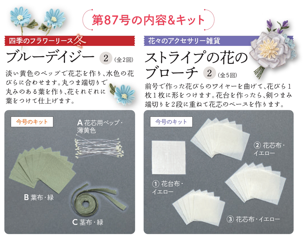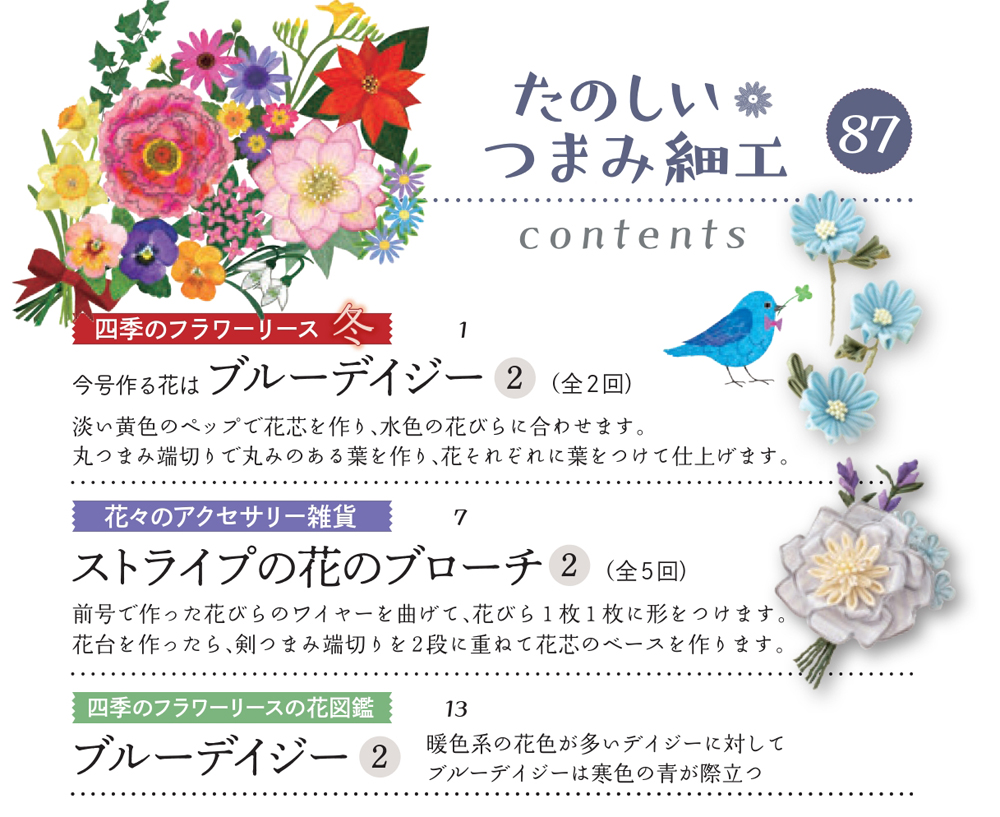 その他の号はこちら たのしい つまみ細工 第87号 商品番号1009050087000000 1,499円 数量 1 2 3 4 5 6 7 8 9 10 カートに入れる 商品概要 発売日:2026年01月20日ブルーデイジー② 他 定期購読する 商品詳細はこちら その他の号はこちら バックナンバー一覧はこちら バインダー・ケースを購入する グッズ・別売りパーツを購入する よくある質問