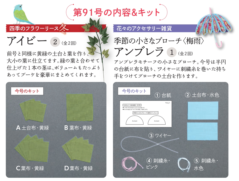 その他の号はこちら たのしい つまみ細工 第91号 商品番号1009050091000000 1,499円 数量 1 2 3 4 5 6 7 8 9 10 カートに入れる 商品概要 発売日:2026年03月17日アイビー② 他 定期購読する 商品詳細はこちら その他の号はこちら バックナンバー一覧はこちら バインダー・ケースを購入する グッズ・別売りパーツを購入する よくある質問