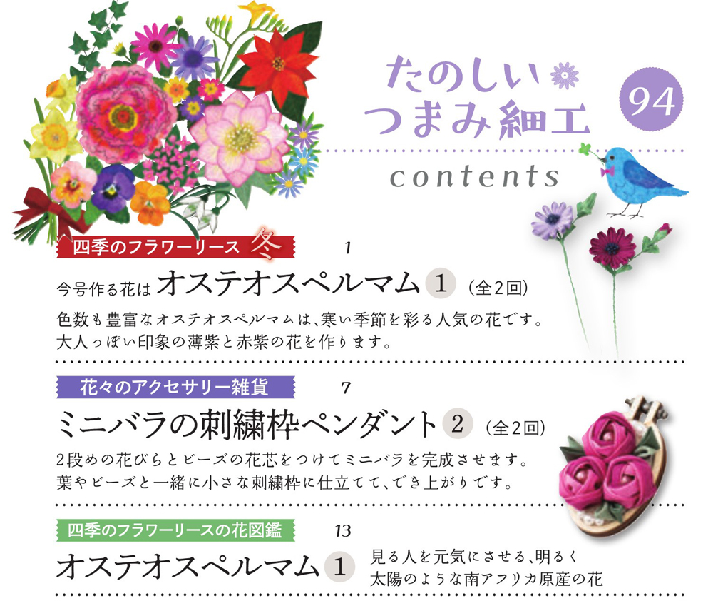 その他の号はこちら たのしい つまみ細工 第94号 商品番号1009050094000000 1,499円 数量 1 2 3 4 5 6 7 8 9 10 カートに入れる 商品概要 発売日:2026年04月28日オステオスペルマム① 他 定期購読する 商品詳細はこちら その他の号はこちら バックナンバー一覧はこちら バインダー・ケースを購入する グッズ・別売りパーツを購入する よくある質問