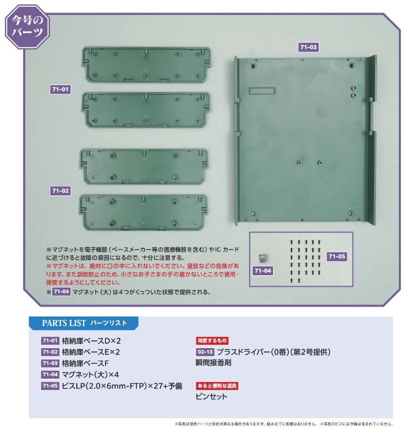 その他の号はこちら エヴァンゲリオン初号機をつくる 第71号 商品番号1009480071000000 1,999円 在庫がありません。 商品概要 発売日:2025年05月13日格納庫② 定期購読する 商品詳細はこちら その他の号はこちら バックナンバー一覧はこちら バインダー・ケースを購入する グッズ・別売りパーツを購入する コミュニティ よくある質問