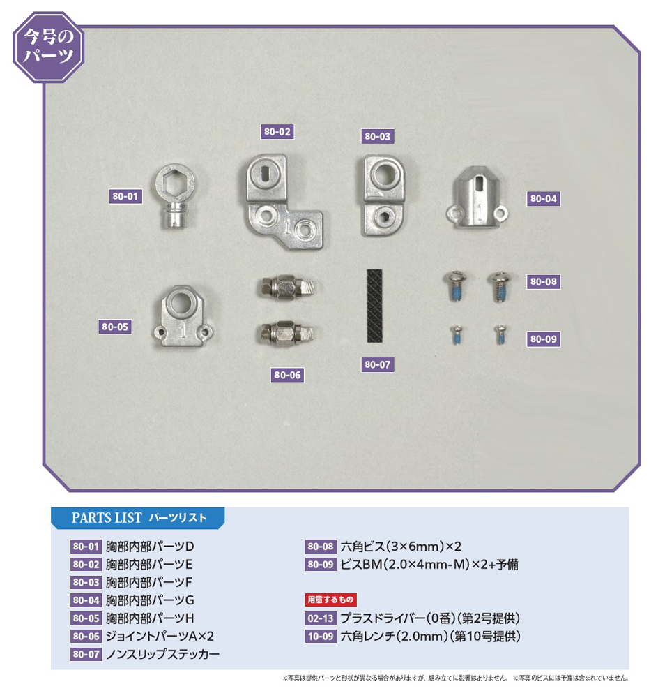 その他の号はこちら エヴァンゲリオン初号機をつくる 第80号 商品番号1009480080000000 1,999円 在庫がありません。 商品概要 発売日:2025年07月15日胸部内部構造② 定期購読する 商品詳細はこちら その他の号はこちら バックナンバー一覧はこちら バインダー・ケースを購入する グッズ・別売りパーツを購入する コミュニティ よくある質問