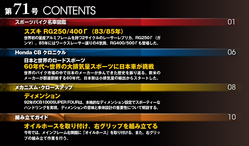 その他の号はこちら ホンダ CB750FOUR 再刊行版 第71号 商品番号1009540071000000 1,999円 数量 1 2 3 4 5 6 7 8 9 10 カートに入れる 商品概要 発売日:2025年06月10日オイルホースを取り付け、右グリップを組み立てる その他の号はこちら バックナンバー一覧はこちら バインダー・ケースを購入する グッズ・別売りパーツを購入する コミュニティ よくある質問
