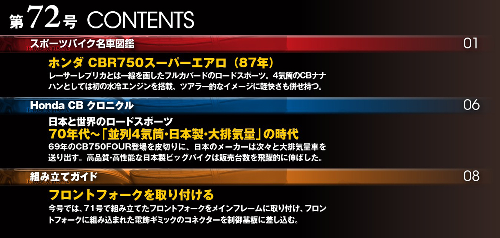 その他の号はこちら ホンダ CB750FOUR 再刊行版 第72号 商品番号1009540072000000 1,999円 数量 1 2 3 4 5 6 7 8 9 10 カートに入れる 商品概要 発売日:2025年06月17日フロントフォークを取り付ける その他の号はこちら バックナンバー一覧はこちら バインダー・ケースを購入する グッズ・別売りパーツを購入する コミュニティ よくある質問