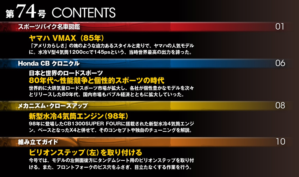 その他の号はこちら ホンダ CB750FOUR 再刊行版 第74号 商品番号1009540074000000 1,999円 数量 1 2 3 4 5 6 7 8 9 10 カートに入れる 商品概要 発売日:2025年07月01日ピリオンステップ(左)を取り付ける その他の号はこちら バックナンバー一覧はこちら バインダー・ケースを購入する グッズ・別売りパーツを購入する コミュニティ よくある質問