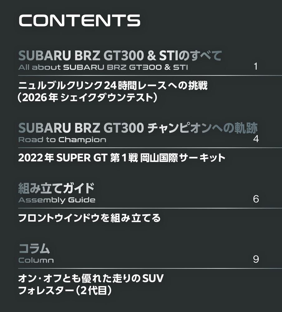 その他の号はこちら SUBARU BRZ GT300 第83号 商品番号1009810083000000 1,999円 数量 1 2 3 4 5 6 7 8 9 10 カートに入れる 商品概要 発売日:2026年04月28日フロントウインドウを組み立てる 定期購読する 商品詳細はこちら その他の号はこちら バックナンバー一覧はこちら バインダー・ケースを購入する グッズ・別売りパーツを購入する コミュニティ よくある質問
