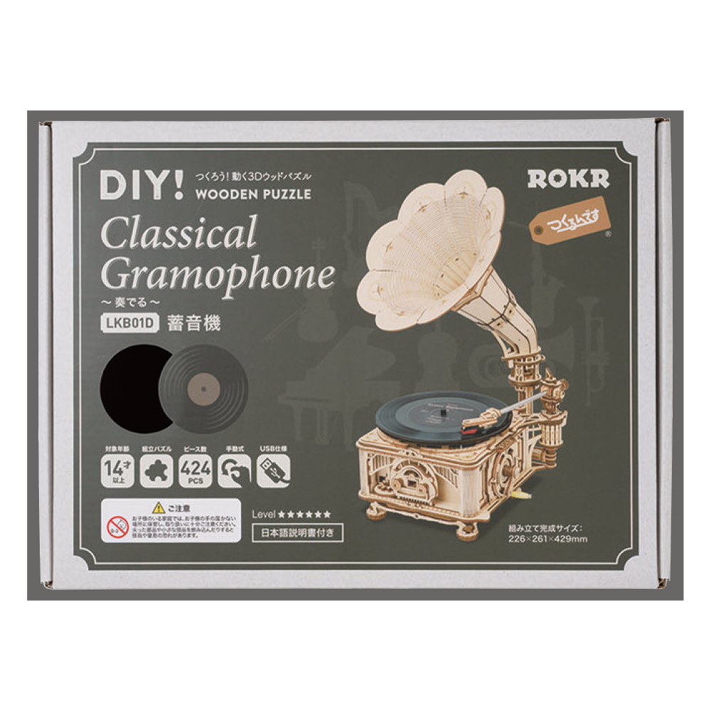 つくるんです 動く3Dウッドパズル 奏でる蓄音機