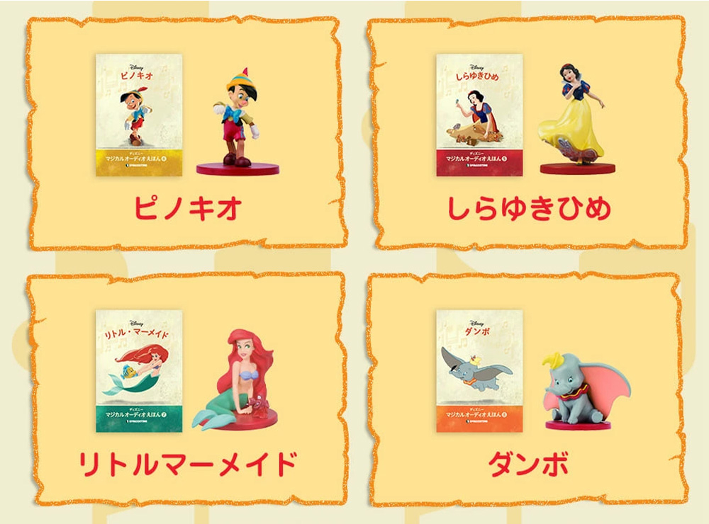 ●セット内容:スピーカー×1(SDカードがセットされています)、充電用USBケーブル、絵本×10、フィギュア×10