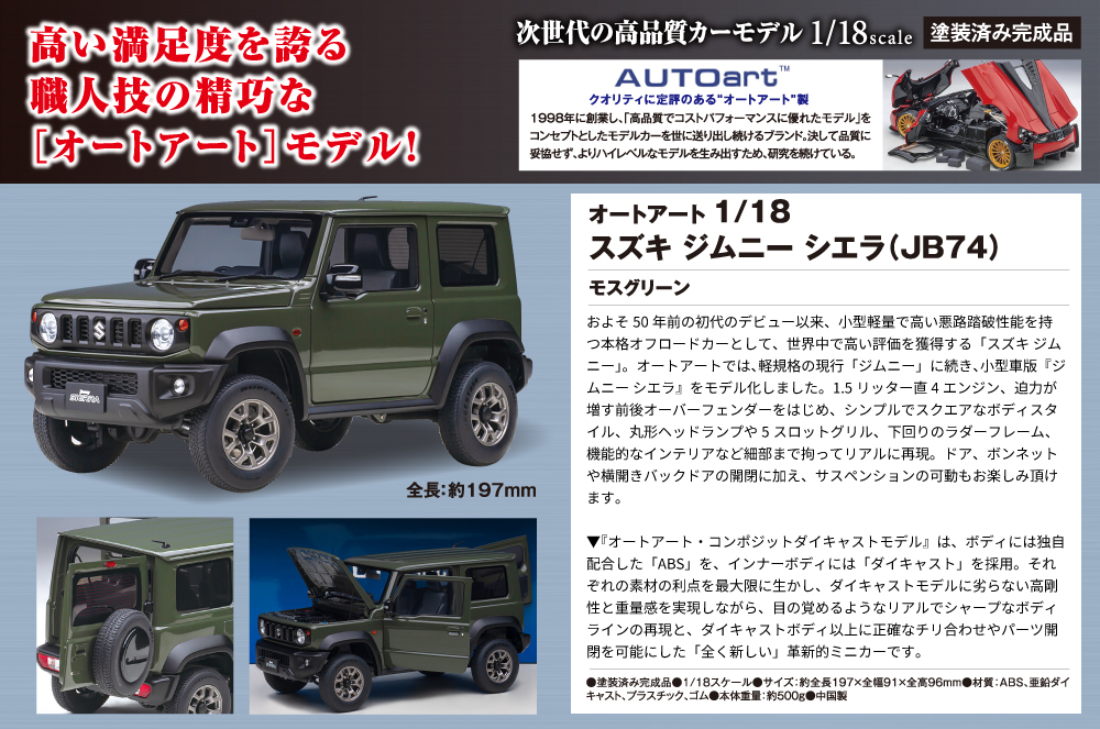 オートアート 1/18 スズキ ジムニー シエラ (JB74) モスグリーン