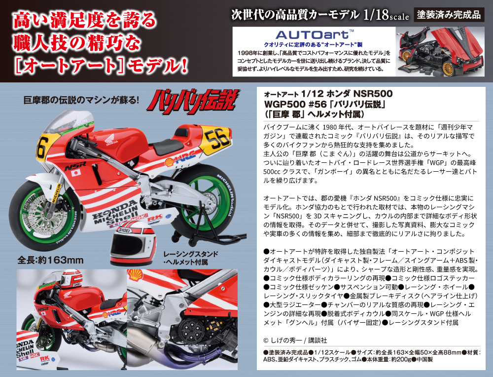 オートアート 1/12 ホンダ NSR500 WGP500 #56 「バリバリ伝説」 (「巨摩 郡」 ヘルメット付属)