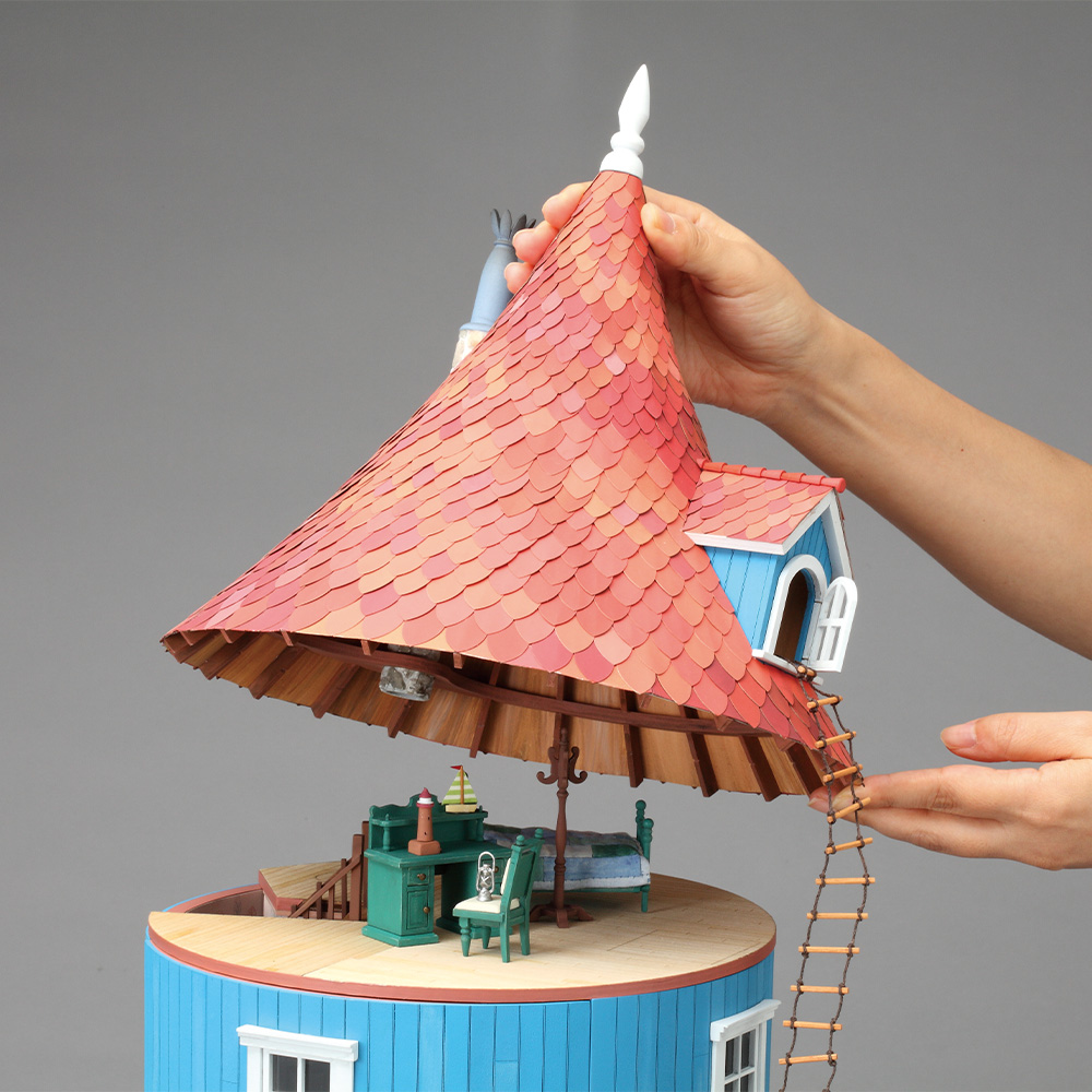ムーミンたちが暮らす、灯台のように細長い家。そのアイコニックなムーミンハウスが、 外観から室内までこだわりのつまった模型になりました!