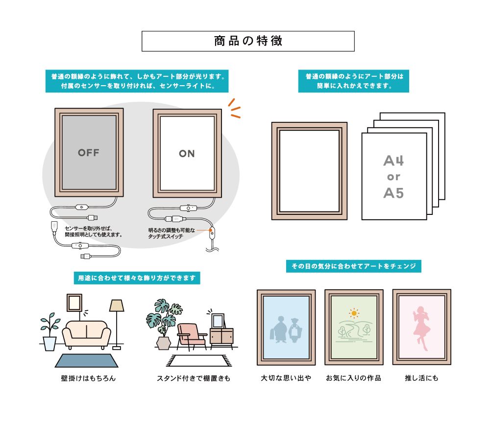 ●セット内容:城郭写真:1枚(ポリエステルキャンバス調生地に印刷)/LEDパネル・フレーム・USB電源コード・人感/明暗センサー・吊り下げ用紐・スイッチライト低減用シール・説明書/保証書
