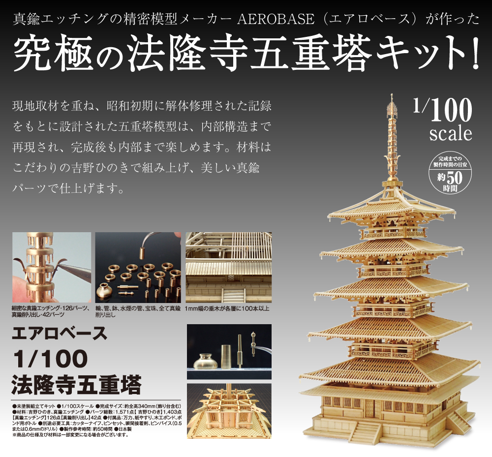 精密モデルメーカーAEROBASEが作る、唯一無二の五重塔模型キット!