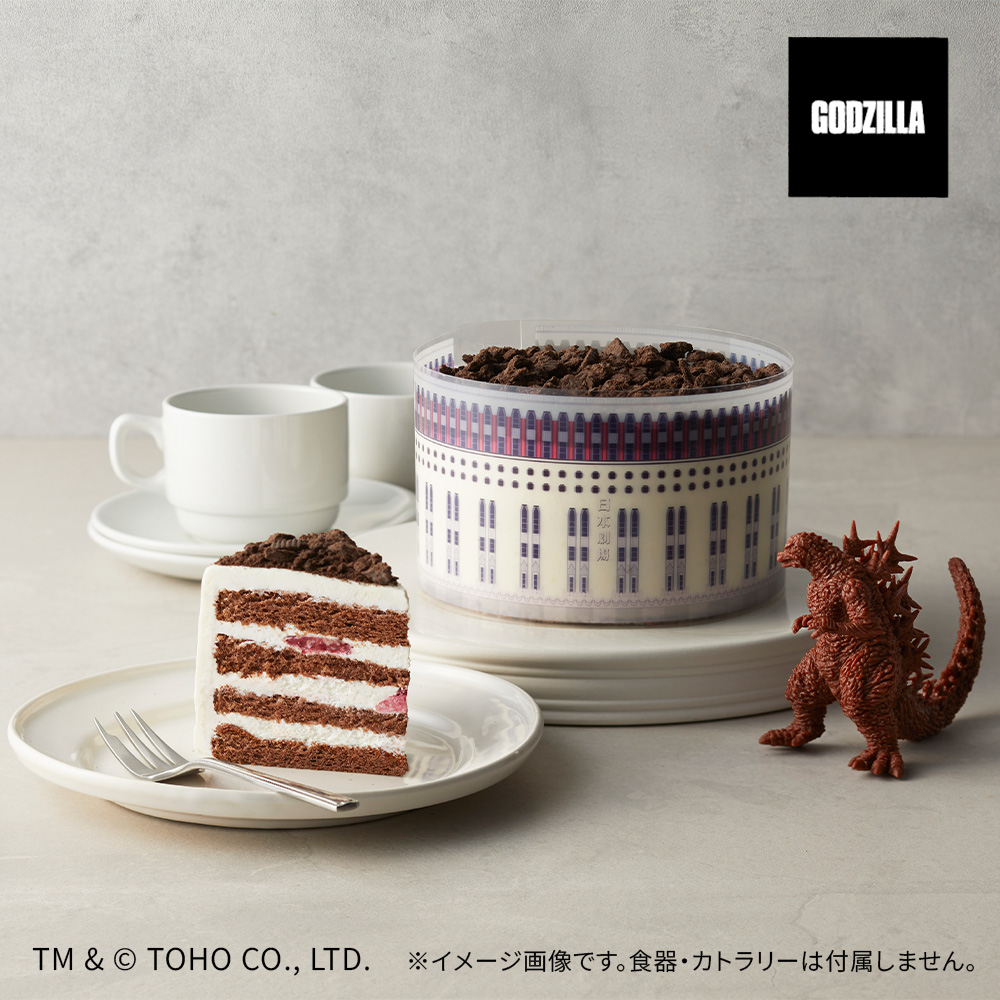 日劇モチーフのケーキにチョコレートカラーのゴジラ(2023)フィギュアが映える!