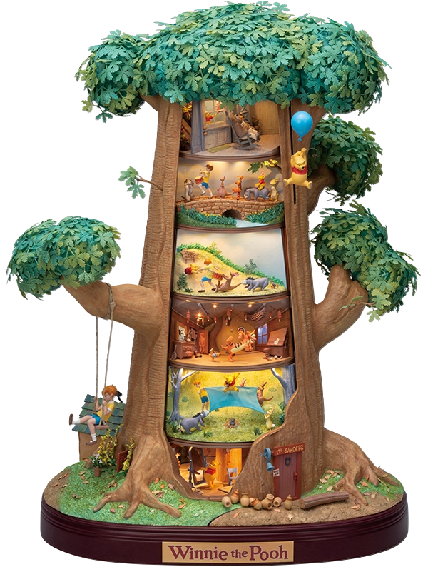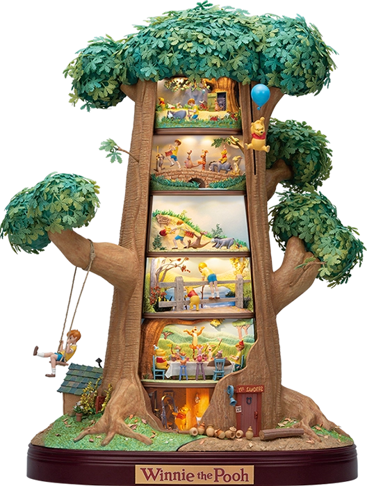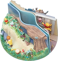 風船で上下するプーや、モーター仕掛けでブランコが揺れ動く。