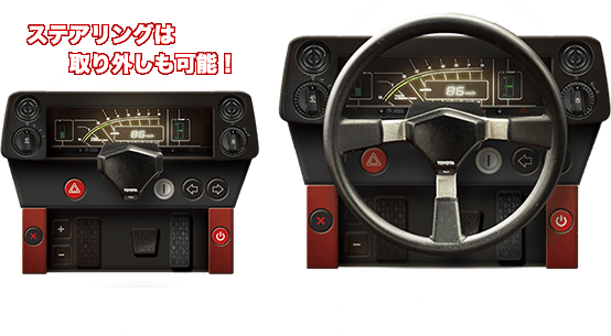 光やサウンドをコントロール! - ハチロクトレノのコックピットを模したリモコンに各種スイッチをレイアウト。リトラクタブルヘッドランプのポップアップや点灯、ウインカーの点滅のほか、ボディに組み込んだスピーカーからは、ドライブモードに応じた迫力のエンジンサウンドも再生される。ドライバー気分で激走するハチロクを実感しよう!